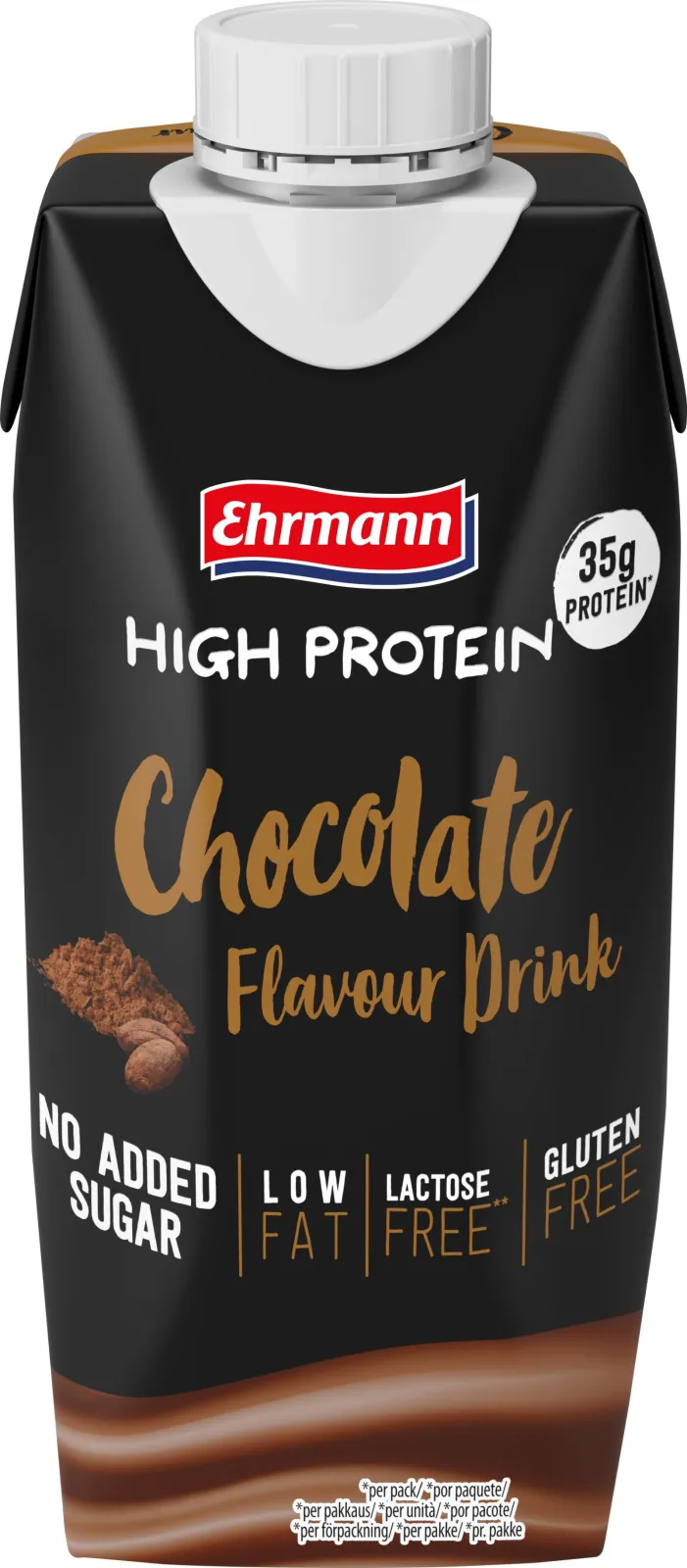 Lots of protein, lots of power, lots of indulgence: Treat yourself to liquid chocolate with 35 grams of protein per bottle, no added sugar, lactose-free, gluten-free and low-fat. Just a sensationally chocolatey taste. Try it now!